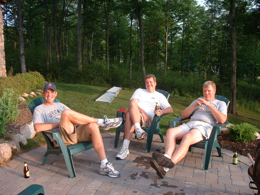 Todd, Kurt and Jeff hanging out on the patio at Jeff’s Cabin