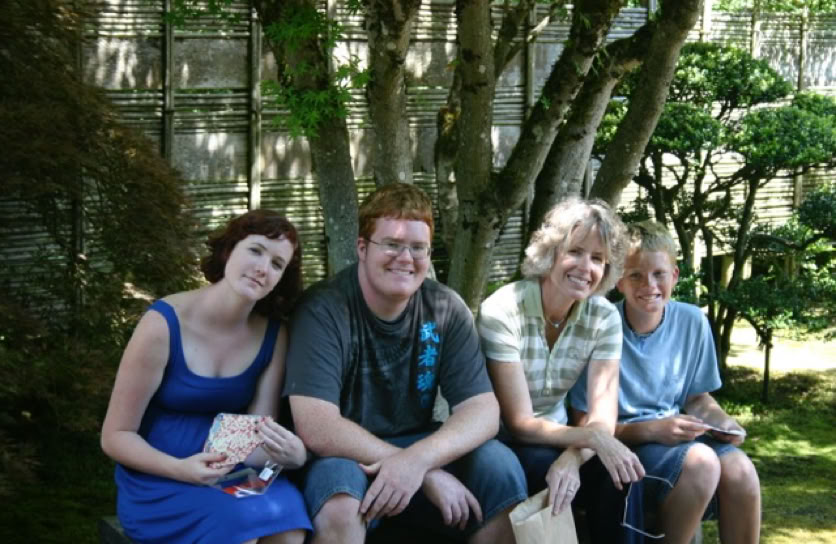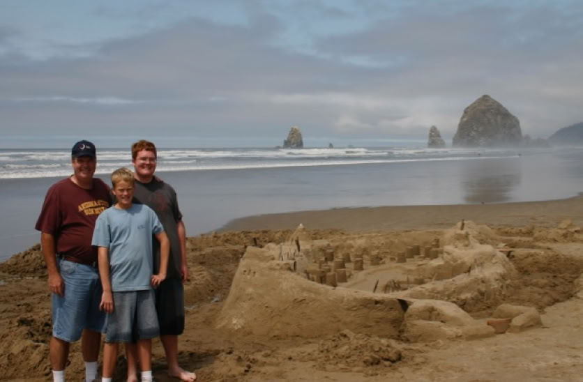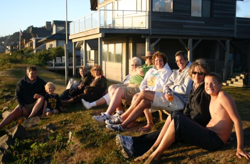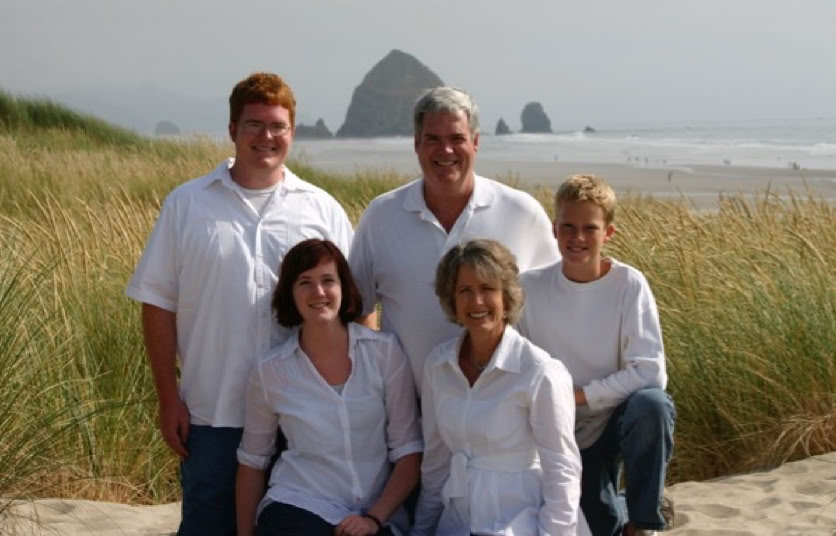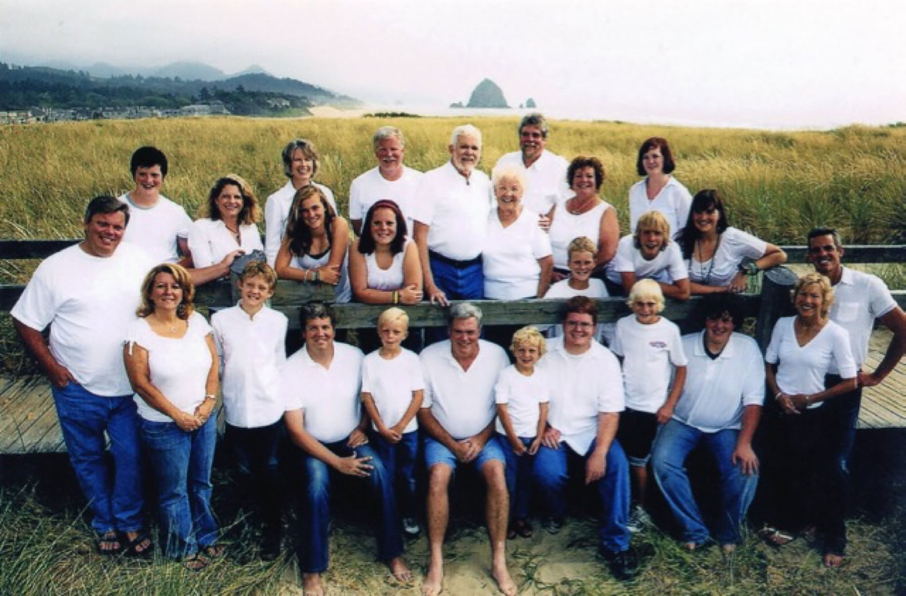 Whole Eckles Family at Cannon Beach with Haystack in background