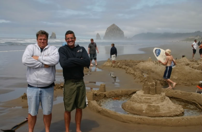 Photo shoot at beach with Haystack in the Background The Wildmen - Kurt and Will