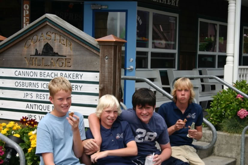 We try to switch coasts to make it fair for everyone, and Rebecca suggested Cannon Beach in Oregon. She did a recon and it was good, so tried something new. It was wonderful. The beach was wide and flat with interesting rocks and tidal pools. The water was too cold to swim in without a wet suit, so the kids got wet suits. The town was small and fun with cool shops and amazing flowers. The hiking along the coast was beautiful and good exercise wit hall the mountains.