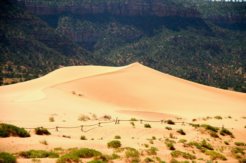 Matthew pretending to be rabbit at the Coral Pink Sand Dunes
