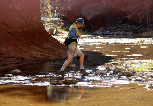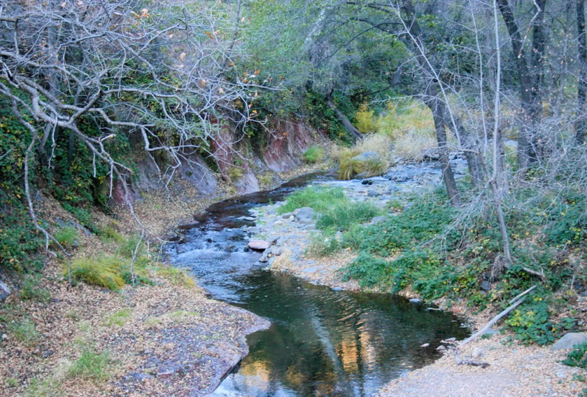 The canyon walls loom overhead giving a warm feeling. The creek winds back and forth, opens up, narrows, deep pools, shallow pools, tiny cascades you name it. Oak Creek is awesome.