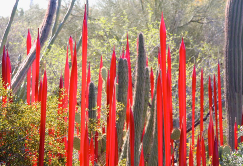 Artist Dale Chihuly visited the Desert Botanical Garden in 2009 and 2013 with a stunning exhibition of his extraordinary and vibrant works of art. Chihuly is credited with revolutionizing the Studio Glass movement and elevating the perception of the glass medium from craft to fine art. He is renowned for his ambitious architectural installations around the world, in historic cities, museums and gardens.
