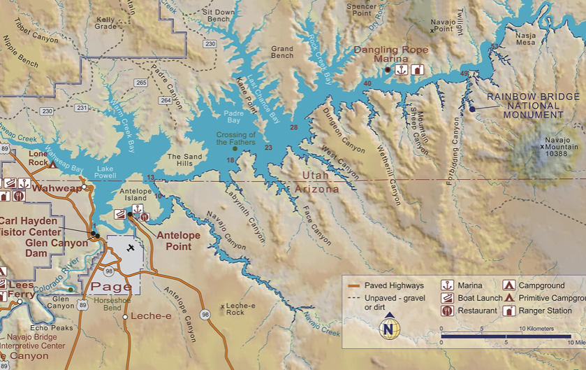 We visited with Jeff, Alex and Mike in 2008. We rented a boat and drove the 40 miles to the Rainbow Bridge. It is huge lake and we almost got lost. We also went swimming at a random cove.