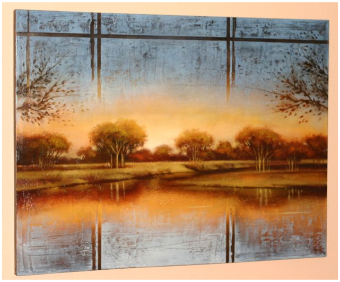 His paintings are created by a unique process of combining oils and acrylics layered upon canvas. With each piece, Henrie spends hours laying his canvas with additive and subtractive methods: sanding, varnishing, taping, adding paint, burnishing and removing layers of paint and plaster. Henrie's highly textural process lends to the depth and sophistication of each work of art. Henrie uses a mixture of plaster, oil paints, crackle paints, and acrylic paints to create his multi-dimensional paintings.