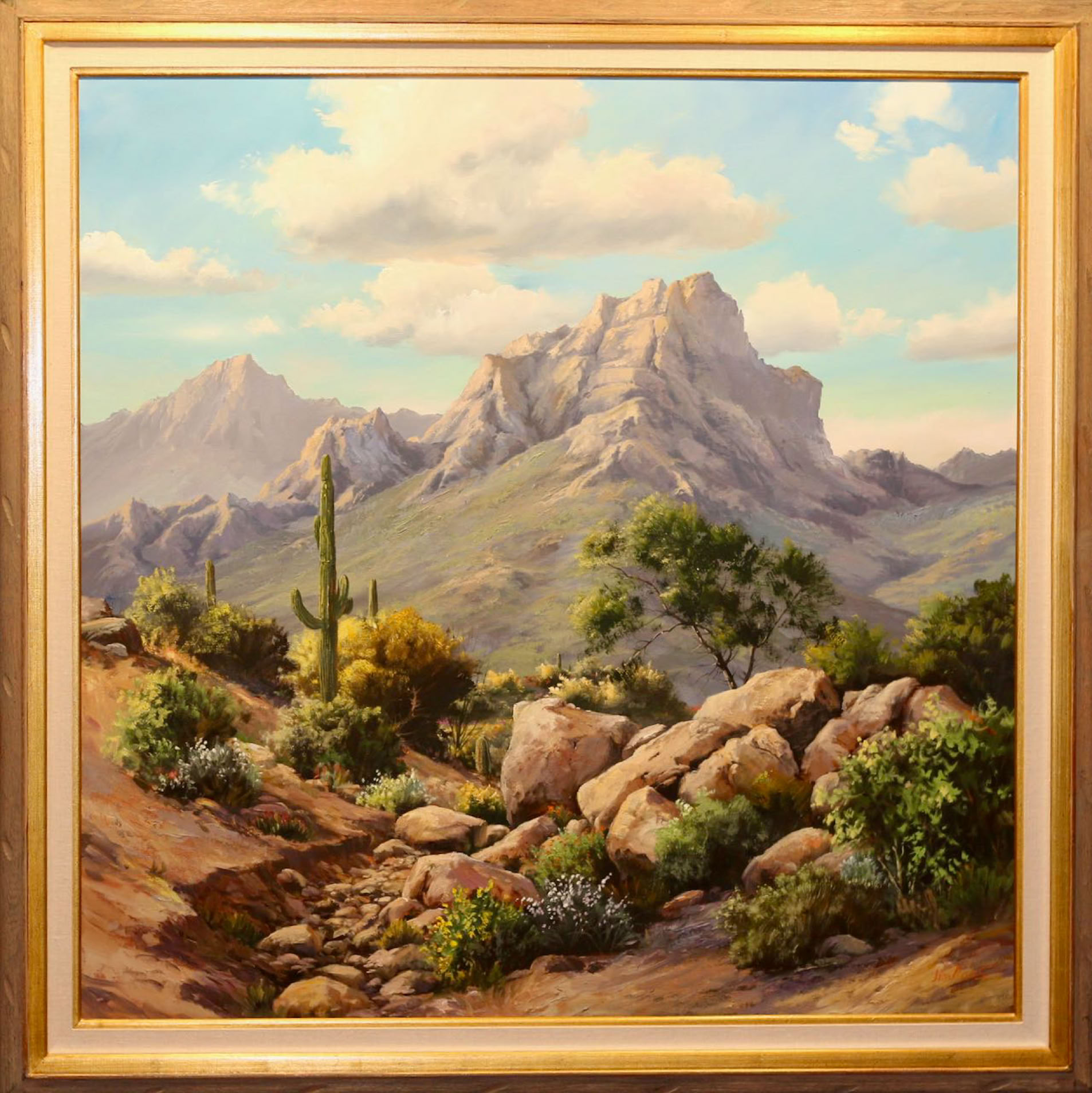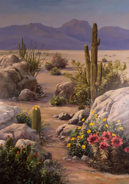 I have been looking for a good Arizona desert picture and this was it. The price was right because the piece is so big (5’ x 5’) it was hard to sell. I have not been able to find out much about the artist, Jim Lewis, but he has been selling other pieces lately, =====>