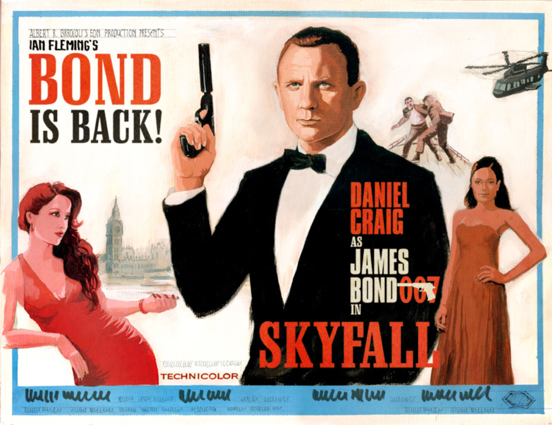 Skyfall is the 23rd James Bond film produced by Eon Productions and released in 2012. It features Daniel Craig in his third performance as James Bond, and Javier Bardem as Raoul Silva, the film's villain. It was directed by Sam Mendes and written by Neal Purvis, Robert Wade and John Logan, and features an Academy Award-winning theme, sung by Adele. It was distributed by Metro-Goldwyn-Mayer (MGM) and Columbia Pictures.[4]