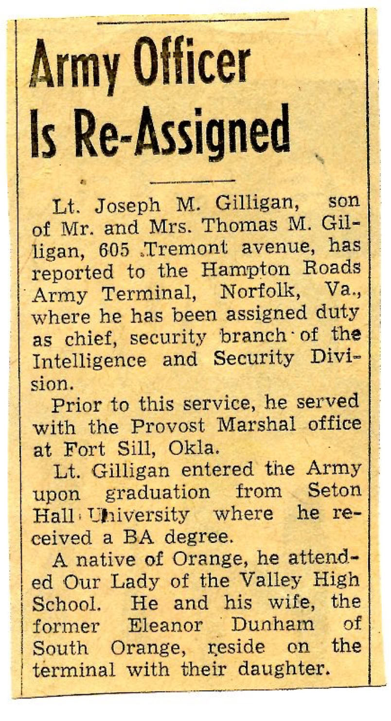 Captain Joseph Gilligan at Hampton Roads Army Terminal, Norfolk, VA