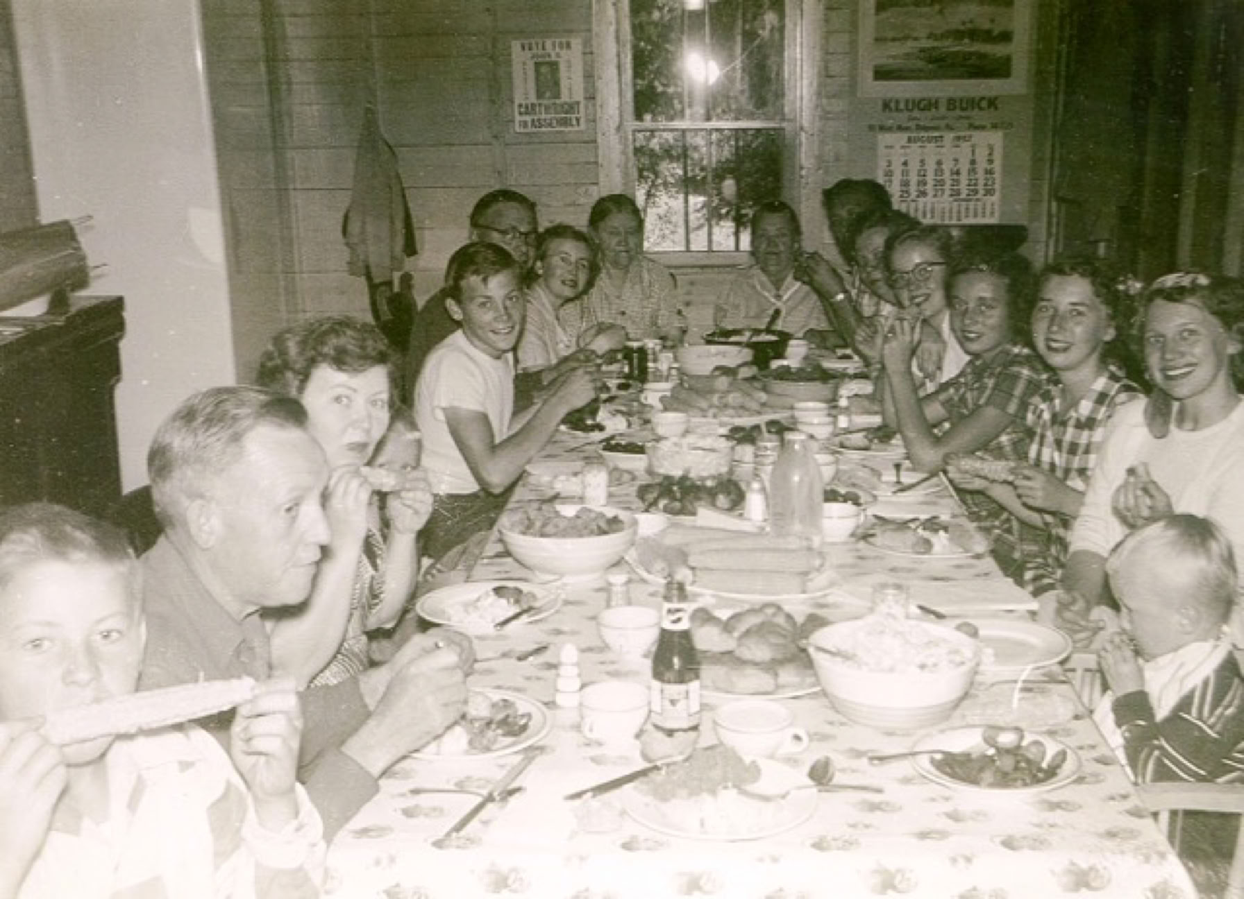 Nelson Family Gathering in Croylen Camp in 1952: David Juers, Henry Juers, Mildred Juers, Denny Nelson, Benny Piccirillo, Mike Piccirillo, Ester Piccirillo, Matilda Nelson (Grandmother), Ellen Bullers (Matilda’s sister), unknown, Helen Bullers (Ellens’ daughter) Clarice Juers, Sylvia Piccirillo, Rosalie Piccirillo, Inga Nelson and Larry Nelson (Paul Nelson taking picture)