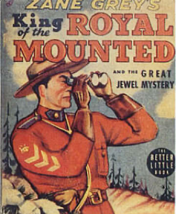 King of the Royal Mounted and the Great Jewel Mystery (1937) King of the Royal Mounted is a fictional series featuring the character Dave King, created by Stephen Slesinger in 1936. Slesinger licensed popular Western writer Zane Grey's byline and marketed the character as Zane Grey's King of the Royal Mounted. Corporal, and later Sergeant, Dave King is a Canadian Mountie who always gets his man. King has appeared in newspaper strips, comics, Big Little Books and other ancillary items